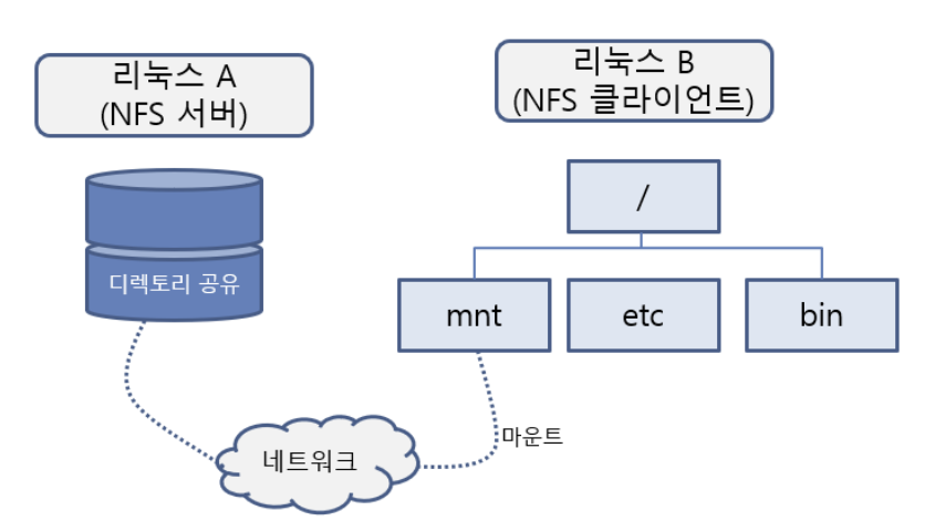 NFS (Network File System) : 네트워크 상의 다른 컴퓨터와 파일을 공유할 수 있게 해주는 프로토콜