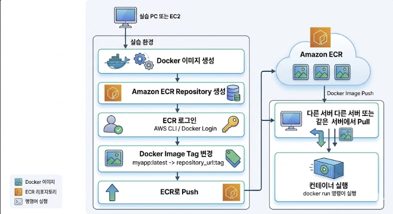 - ECR은 리전 단위 서비스이므로, 생성 리전과 Push/Pull 리전이 같아야 함